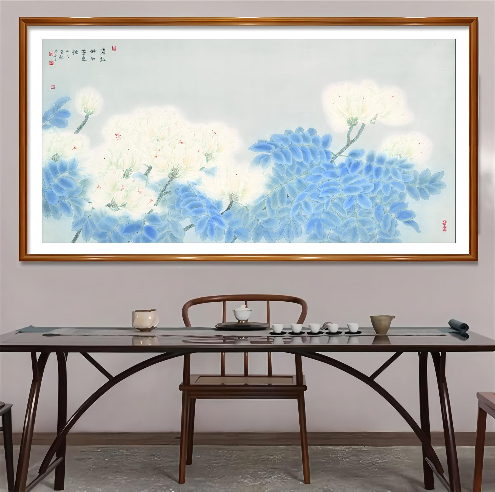 有人说,李净弘的作品像一场心灵的修行。他笔下的山水与花鸟,不仅有形的美,更有“心”的觉醒。那种源自东方哲思的空灵与宁静,使得他的画面仿佛带有一种超越时间的力量。他常说:“画,必须是灵魂的流动,而不是技巧的堆砌。”正因如此,他的作品总能让人感受到生命的温度与思想的深度。无论是泼墨的苍劲山水,还是清逸的花鸟意境,皆显现出一种“不染尘世”的纯净之美。