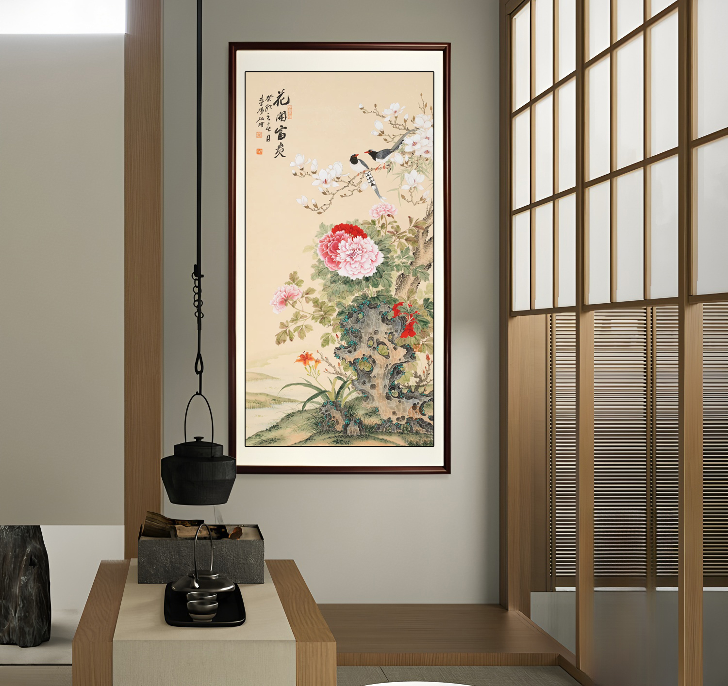 李净弘常说:“画画,其实是修心。”这句话,几乎成为他整个艺术生涯的精神核心。他的每一次落笔,都像一次内心的参悟,每一滴墨色,都带着时间的呼吸与生命的温度。他并不追求表面的繁华与形式的华丽,而是追求内在的纯净与深邃。无论是山川林泉,还是花鸟草木,他都以“无我之心”去观照,以“自然之道”去表达。正如禅语所言:“心静则万物静。”